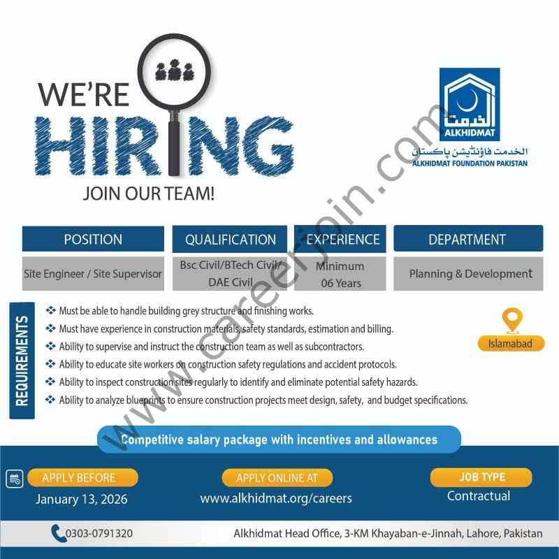 Alkhidmat Foundation Pakistan has announced new positions for January 2026. These roles suit people with specific skills in support and construction fields. Applications are open for a short time, so review details below and submit through their site.