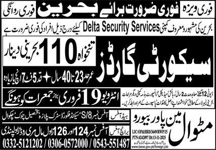Matwal Manpower Bureau has announced openings for security guards in Bahrain. This opportunity targets Pakistani candidates with at least Matric or Intermediate education. Applications are open now, with the deadline set around February 19, 2026, or as stated in the newspaper advertisement.
