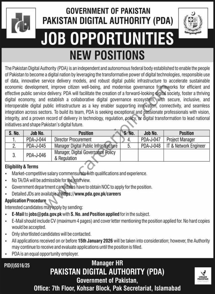 The Pakistan Digital Authority, or PDA, is a government body that handles digital progress in Pakistan. It aims to create better public services through tech. Right now, PDA has openings for leaders and experts in digital areas. All jobs are in Islamabad. The last day to send applications is January 15, 2026.