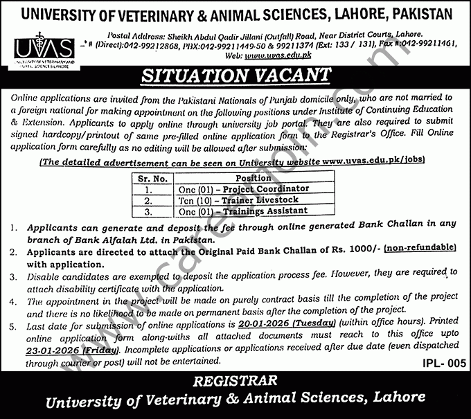 The University of Veterinary and Animal Sciences in Lahore has announced several openings for qualified candidates. These roles cover a range of areas in veterinary and animal sciences. The positions offer a chance to work in a leading institution focused on education and research in Lahore.